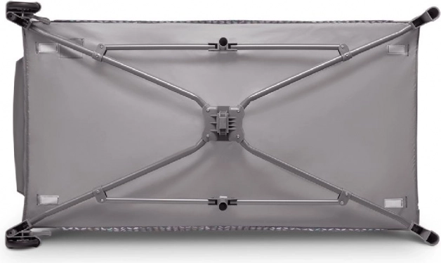 Wytrzymała rama z systemem LockGuard zapobiega samoistnemu złożeniu. Siatkowane ścianki zapewniają cyrkulację powietrza i lepszą widoczność dziecka.