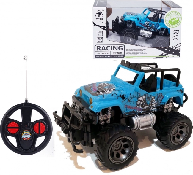 Model zasilany trzema bateriami AA, kontroler dwiema AA (baterie nie są dołączone do zestawu). Podstawowy zasięg około 5 metrów jest idealny do bezpiecznej zabawy; reflektory są wyłącznie elementem designu i nie działają.