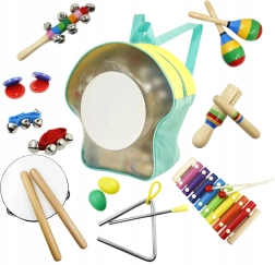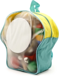 Lekki plecak mieści cały zestaw, ułatwia przenoszenie i organizację. Dziecko może zabrać swoje instrumenty wszędzie.