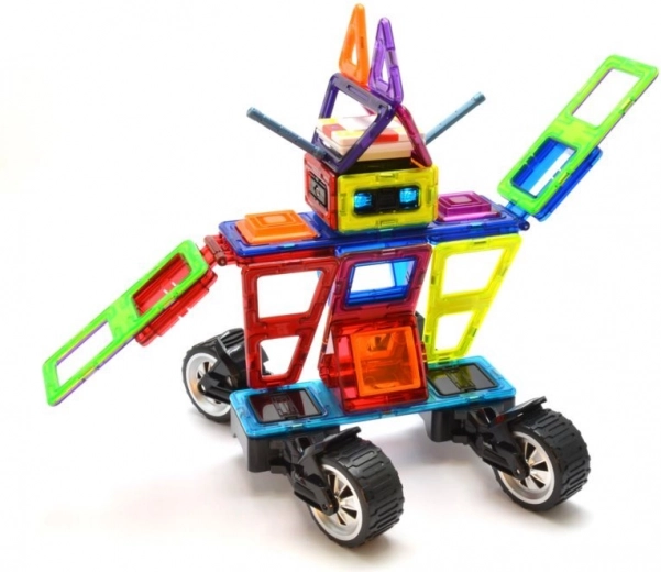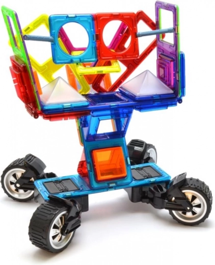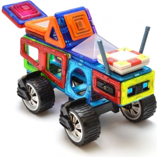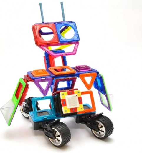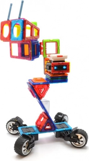 Odkryj kreatywną magnetyczną układankę MAGFORMERS z 40 elementami i zbuduj jeżdżące roboty, buggy, pojazdy ciężarowe oraz pojazdy kosmiczne. Dzięki magnetycznym elementom, obrotowym podwoziom i modułom bonusowym (moduł audio i battery pack) czekają Cię liczne efekty świetlne i dźwiękowe. Szerokie koła, regulowane ramiona na zawiasach oraz kompatybilność z GEOMAG poszerzają możliwości budowania i rozwijają kreatywność oraz małą motorykę.