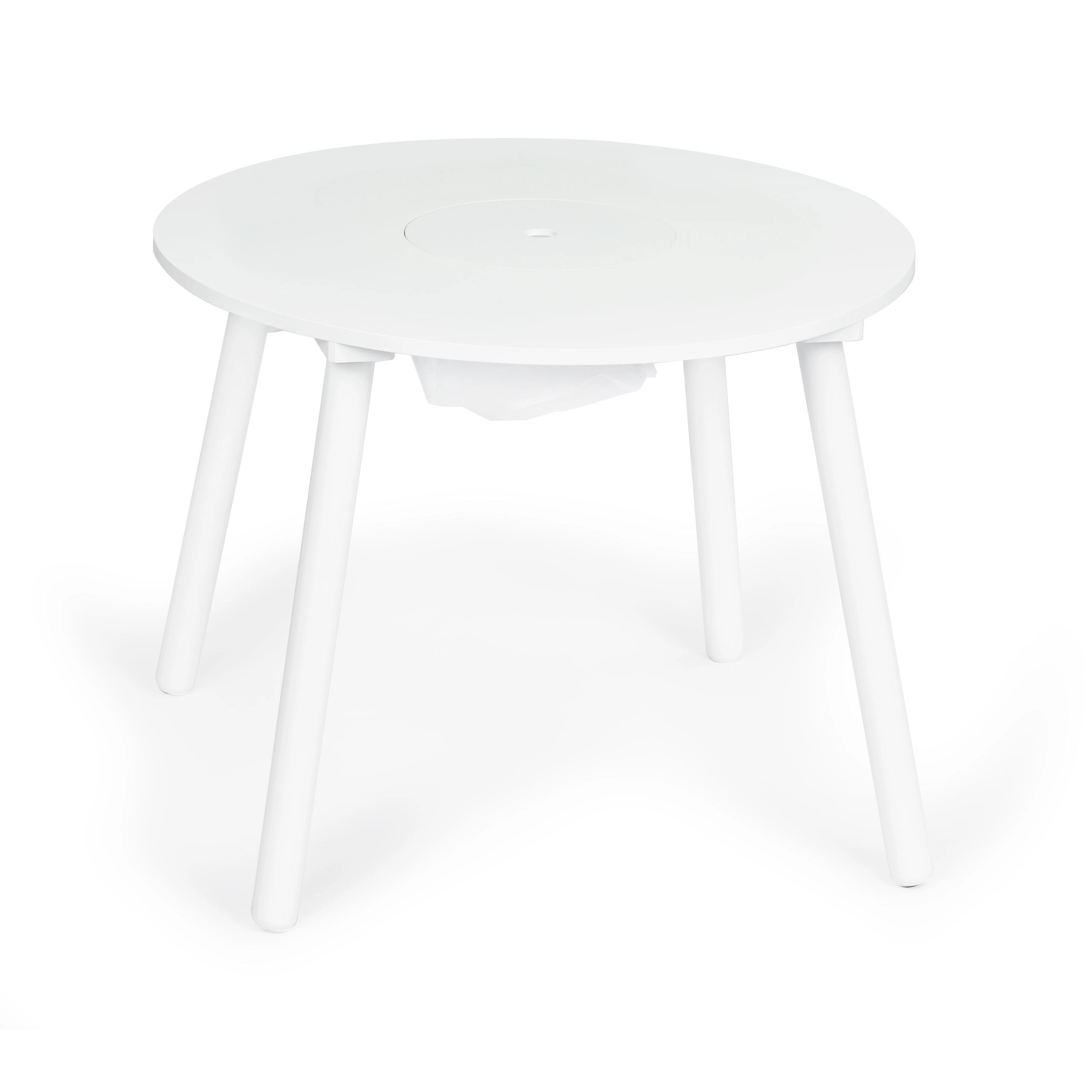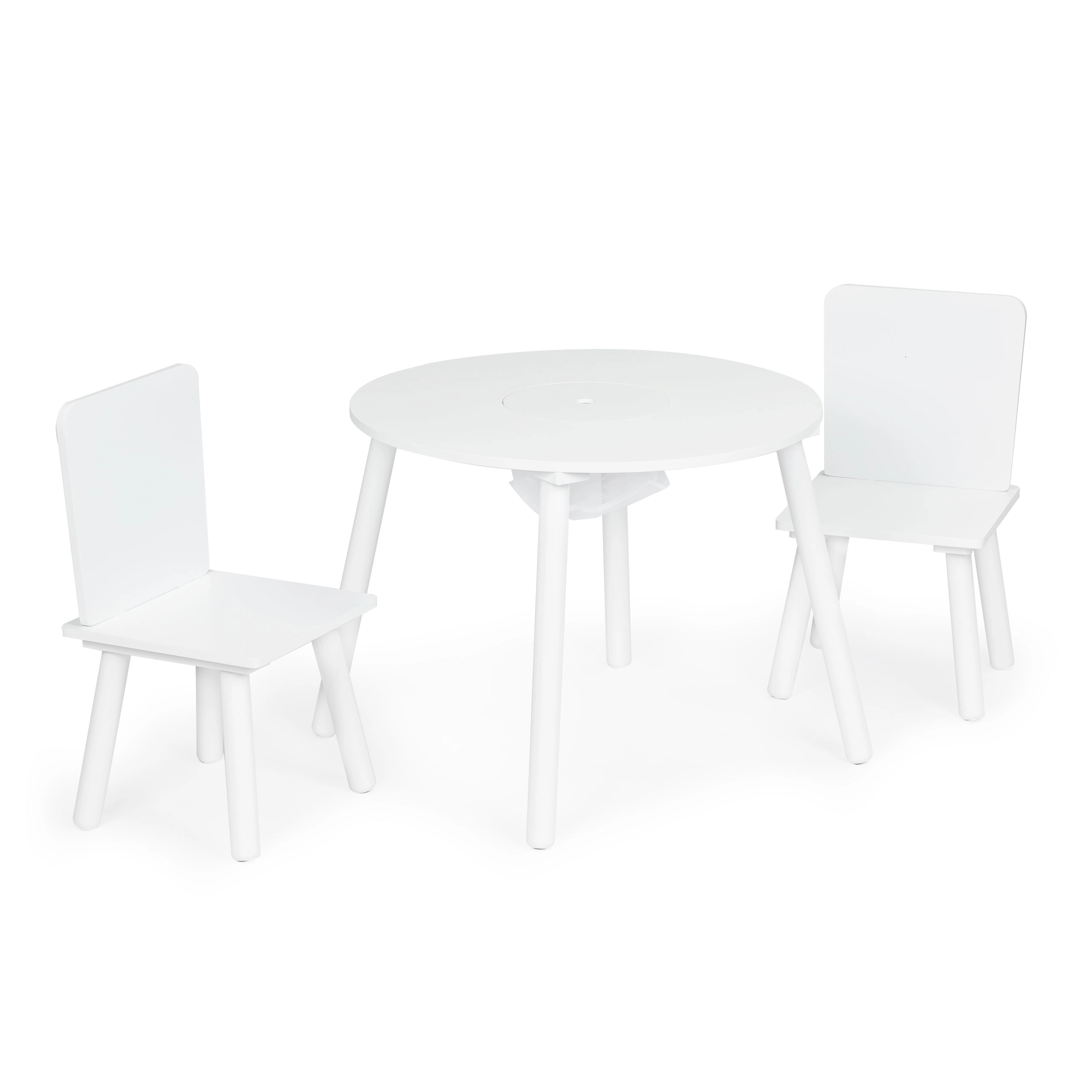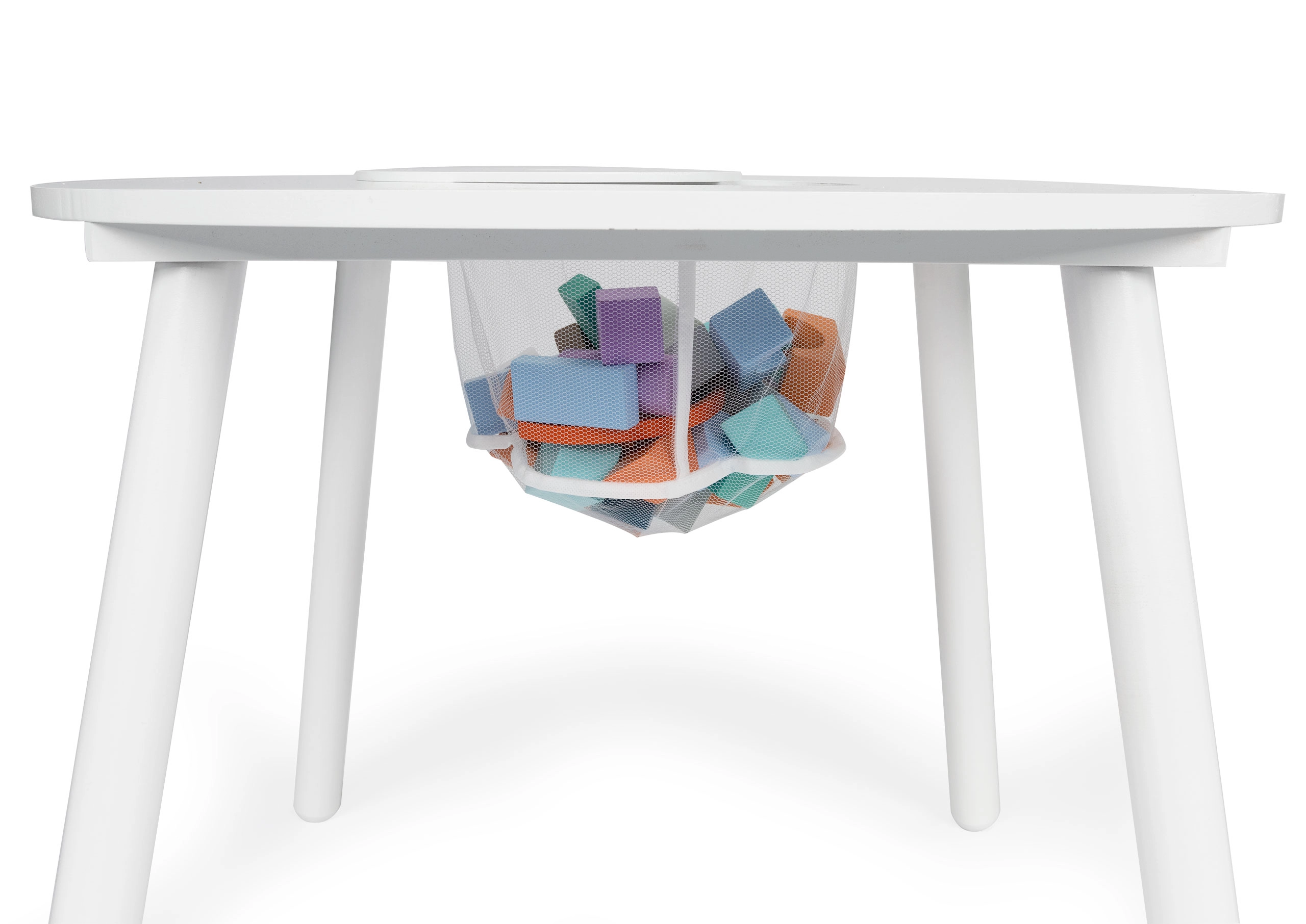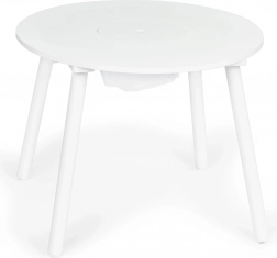 Przestronny okrągły blat bez ostrych krawędzi oferuje dużo miejsca na rysowanie, klocki i przekąski – bezpiecznie i przejrzyście.