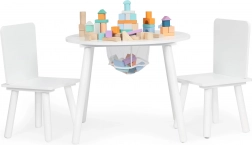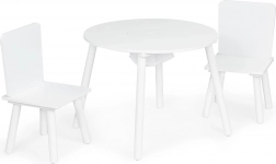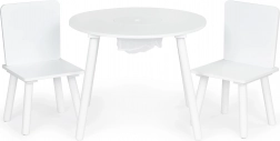 Stwórz dzieciom ich własny kącik do tworzenia, budowania i przekąsek. Okrągły blat stołu wykonany jest z trwałej płyty MDF z gładką, łatwą do czyszczenia powierzchnią, która wytrzymuje codzienne użytkowanie. Stabilność zapewniają masywne sosnowe nogi, dzięki czemu zestaw jest bezpieczny i solidny.