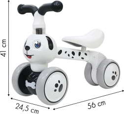 Oczy psa obracają się w kierunku jazdy, co tworzy zabawny efekt, który pokocha każde dziecko. Ten jeździk przynosi radość i jednocześnie uczy nowych umiejętności.
