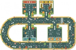 Zamień podłogę w tętniące życiem miasto. Dzięki 21 łączonym elementom dzieci mogą projektować proste odcinki, zakręty i skrzyżowania, a potem ruszyć w drogę ulubionymi autkami. Zabawa, która rozwija wyobraźnię i uczy logicznego planowania.