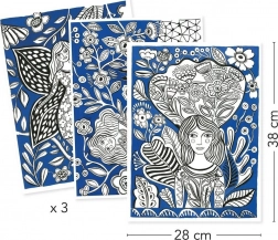 Zestaw zawiera 3 artystyczne motywy o wymiarach około 28 × 38 cm, gotowe stać się oryginalną dekoracją po pokolorowaniu.