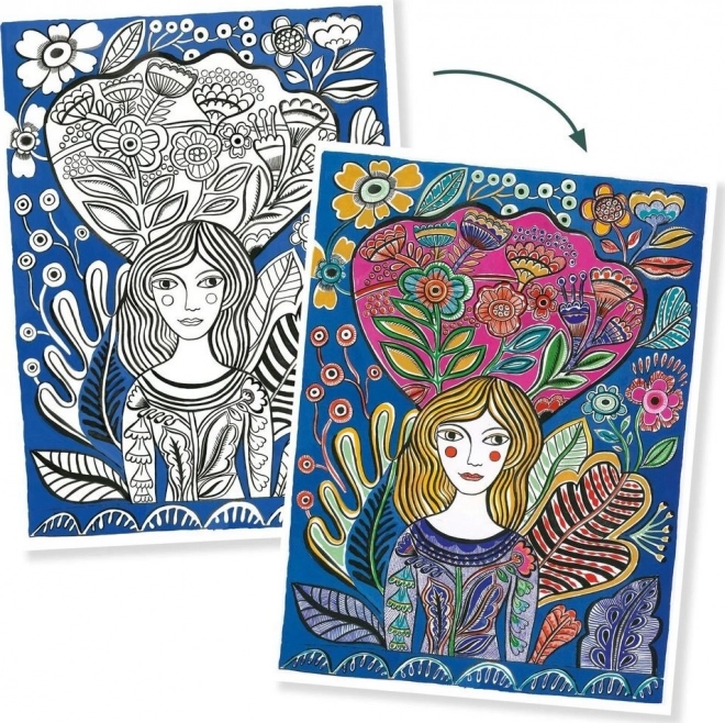 Każdy motyw oferuje inne podejście – od kolorowych obramowań po jasne i ciemne tło – abyś mógł wypróbować różne techniki i harmonie barw. Możesz podążać za paletami i szablonami zaprojektowanymi przez artystów lub tworzyć całkowicie po swojemu. Praktyczne opakowanie dodatkowo posłuży jako podkładka do rysowania oraz bezpieczne miejsce na przechowywanie prac.