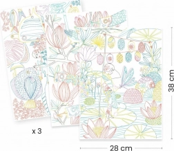 Zestaw zawiera portfolio z 3 dużymi obrazami przygotowanymi do kolorowania. Każdy obraz oferuje różne podejścia z kolorowymi obramowaniami, jasnym i ciemnym tłem, które dostarczą wyjątkowych pomysłów na kolorowanie. Niezależnie od tego, czy zdecydujesz się podążać za zaproponowanymi paletami barw i szablonami artystów, czy wybierzesz własną ścieżkę, zależy to wyłącznie od Ciebie. Kolorowanki są drukowane na delikatnym papierze o jakości artystycznej, który jest mocny i lekko ziarnisty.