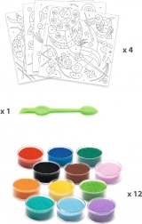 Stwórz unikalne i kolorowe dzieło sztuki, używając dwunastu różnych kolorowych piasków i specjalnego narzędzia.