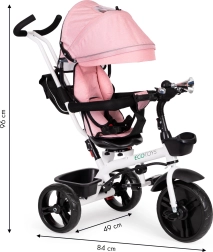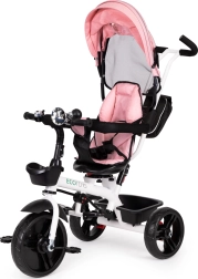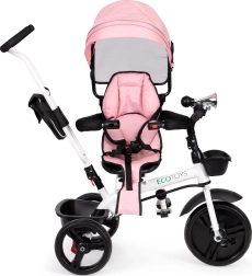 Ten trójkołowy pojazd ECOTOYS jest wyposażony w trwałą stalową konstrukcję, która gwarantuje długą żywotność. Dzięki obrotowemu siedzisku można łatwo zmieniać kierunek, co szczególnie docenią mniejsze dzieci. Zdejmowalna daszek, drążki bezpieczeństwa i kierownica dodają wszechstronności i możliwości dostosowania.