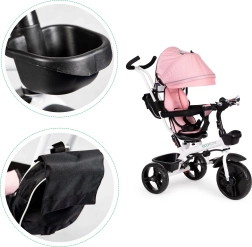Zawiera również praktyczne koszyki i torby na drobne przedmioty, co zapewnia wystarczająco dużo miejsca na zabawki lub różne cenne znaleziska podczas spacerów.