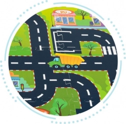 Detaliczny nadruk ulic, skrzyżowań i budynków pobudza wyobraźnię oraz rozwija motorykę i percepcję przestrzenną dzieci.