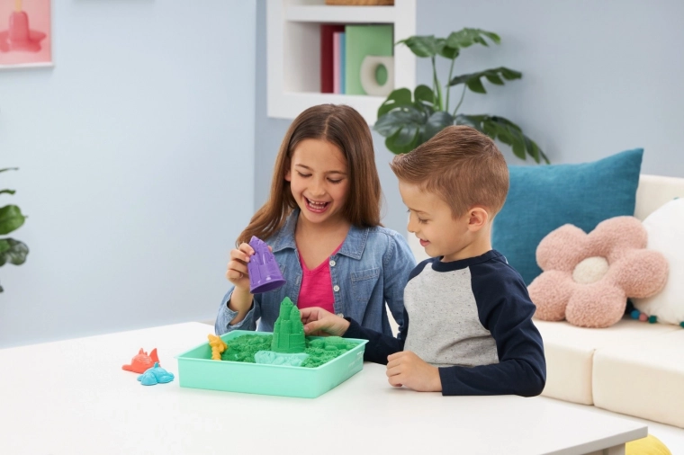 Ten kreatywny zestaw z oryginalnym piaskiem Kinetic Sand przenosi piaskownicę prosto na stół. Piasek przepływa między palcami, jest hipnotyzująco przyjemny w dotyku, a jednocześnie doskonale trzyma kształt. Dzięki tacce zabawa pozostaje przejrzysta i uporządkowana, więc dzieci mogą cieszyć się tworzeniem sensorycznym przez cały rok.