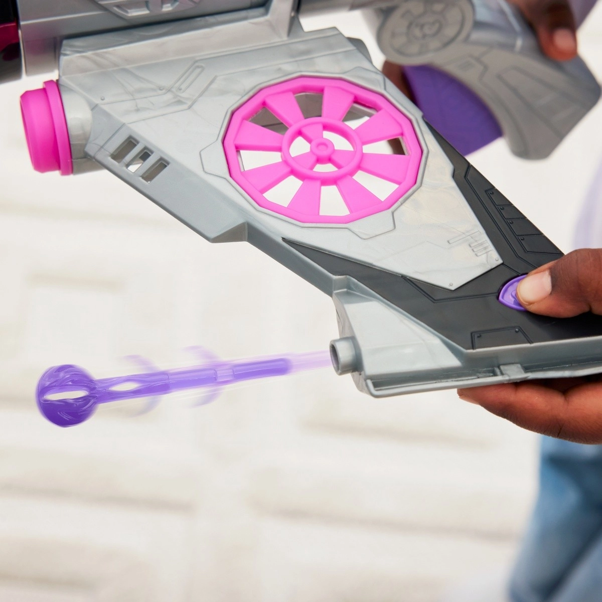 Naciśnięcie dźwigni na uchwycie uruchamia obrót skrzydeł i przełącza samolot w tryb akcji. W razie przeszkód wystarczy załadować 2 wyrzutnie i odpalić pociski przyciskami na skrzydłach. Zabawka wspiera wyobraźnię, zdolności motoryczne i zapewnia autentyczne wrażenia z ulubionego filmu.