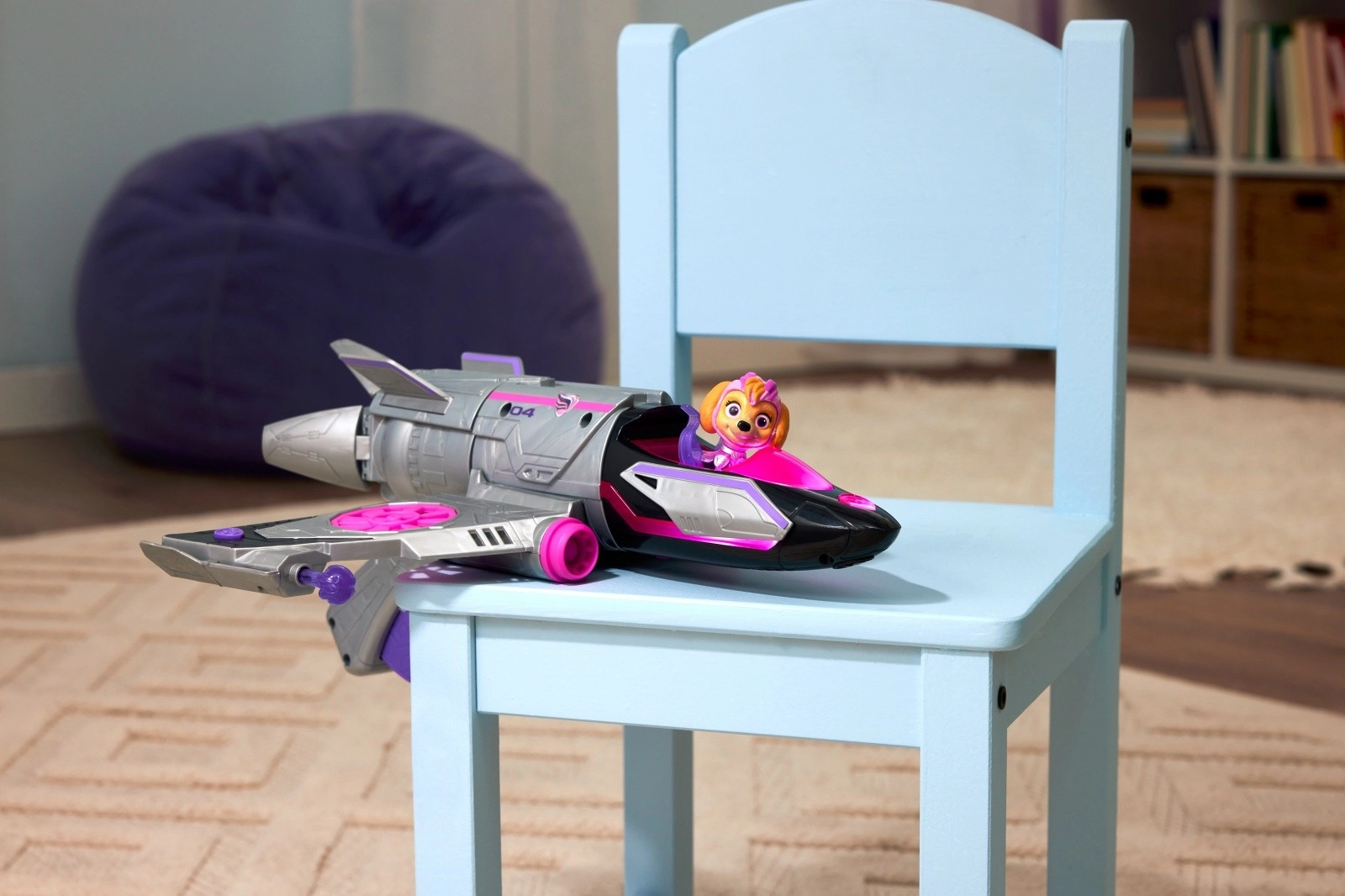 Przeżyj filmową akcję z interaktywnym samolotem Skye z filmu Psi Patrol: Wielki film. Po posadzeniu figurki w kokpicie rozświetlają się elementy samolotu i Skye, uruchamia się muzyka i efekty dźwiękowe, a dzieci mogą od razu ruszyć na misję. Dzięki ergonomicznemu uchwytowi można przechylać samolot w górę, w dół i na boki, aktywując dodatkowe reakcje dźwiękowe.