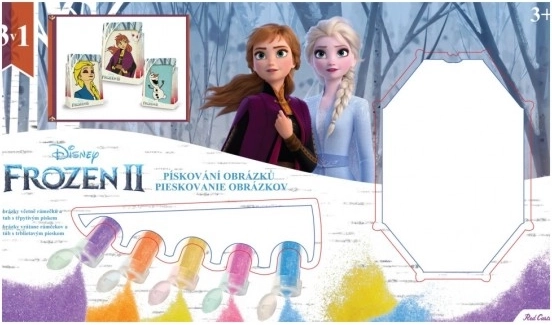 Zestaw do piaskowania obrazków z motywami z filmu Kraina Lodu II został zaprojektowany, aby zapewnić dzieciom zabawną i kreatywną aktywność. Za pomocą trzech szablonów do piaskowania i 16 tub z kolorowym błyszczącym piaskiem dzieci mogą stworzyć własne błyszczące obrazki. Po zakończeniu piaskowania gotowy obraz można umieścić w dołączonej okładce i ozdobnej ramce, jako piękną dekorację do pokoju dziecięcego.<52p>