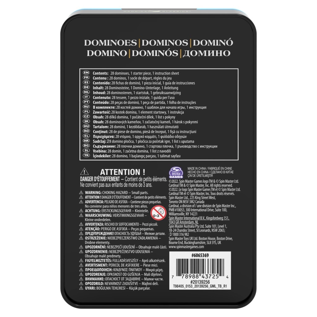 Ciesz się klasyczną rodzinną zabawą z zestawem domina w puszce. Zawiera 28 kostek z kolorowymi kropkami, zasady gry i jest idealny dla 2–4 graczy od 5 lat. Świetny na rodzinny wieczór gier oraz do nauki logiki, dopasowywania i podstaw matematyki.