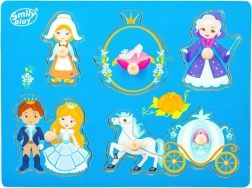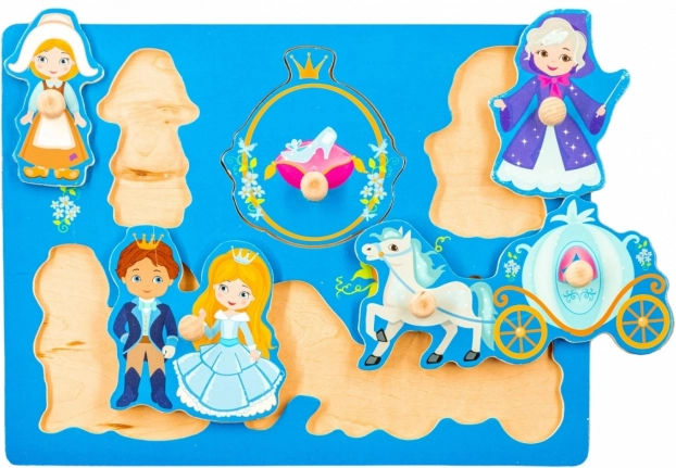 Ta drewniana układanka z bajkowym motywem Popieluszki to świetny wybór na pierwsze puzzle dla dziecka. Każdy element ma praktyczny uchwyt, dzięki któremu łatwo go chwycić i włożyć na właściwe miejsce. Kolorowa plansza służy jako czytelne tło, które podpowiada dziecku prawidłowe ułożenie elementów.