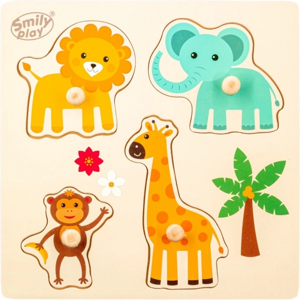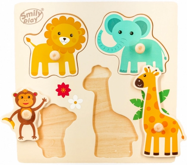- Drewniana układanka wtykowa ze zwierzątkami