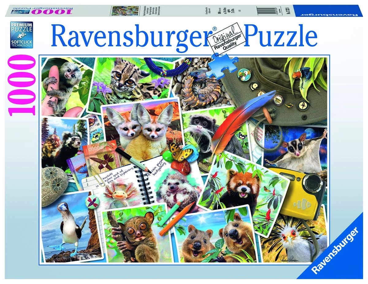 Odkryj wysokiej jakości puzzle RAVENSBURGER z motywem „Zwierzęta w podróży” składające się z 1000 elementów. Po ułożeniu mają wymiary 70 × 50 cm i są idealne dla młodzieży oraz dorosłych. Dzięki opatentowanej technologii SoftClick, antyrefleksyjnej lnianej strukturze papieru oraz wytrzymałemu, grubemu kartonowi elementy łączą się precyzyjnie, łatwo się układają, a obraz jest pięknie ostry bez odblasków.