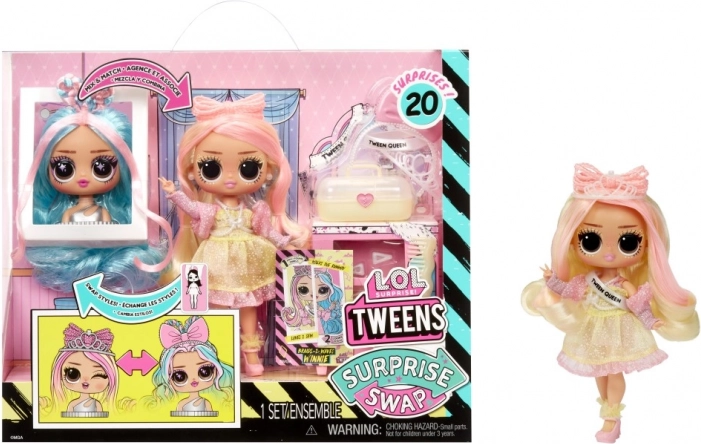 Odkryj magiczny świat mody i stylu z laleczką L.O.L. Surprise! Swap Tweens i mini główką do czesania. Ten zestaw oferuje nieskończoną zabawę dzięki możliwości wymiany głów oraz stylizacji fryzur za pomocą licznych akcesoriów.
