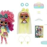 Laleczka jest ubrana w jasne stylizacje, a jej włosy i akcesoria są w modnych kolorach, które przyciągają każde dziecko.