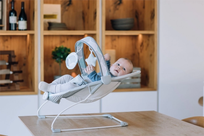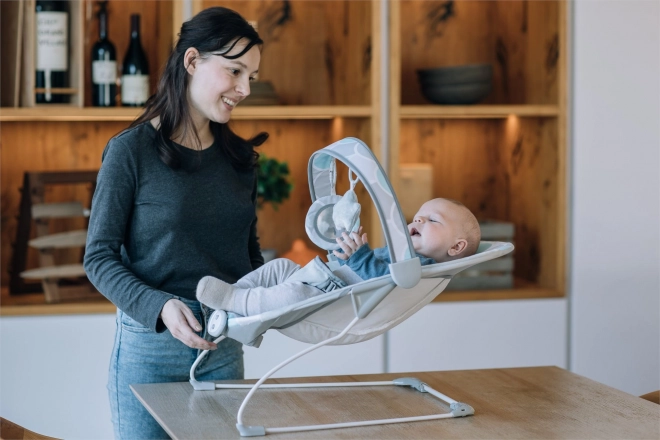 Zdejmowany pałąk z miękkimi zabawkami wspiera rozwój motoryki i wyobraźni, a 3‑punktowy pas bezpieczeństwa zapewnia pewne przypięcie. Praktyczny zdejmowany i pralny pokrowiec ułatwia pielęgnację. Do zasilania wystarczą 2× baterie AA (brak w zestawie).