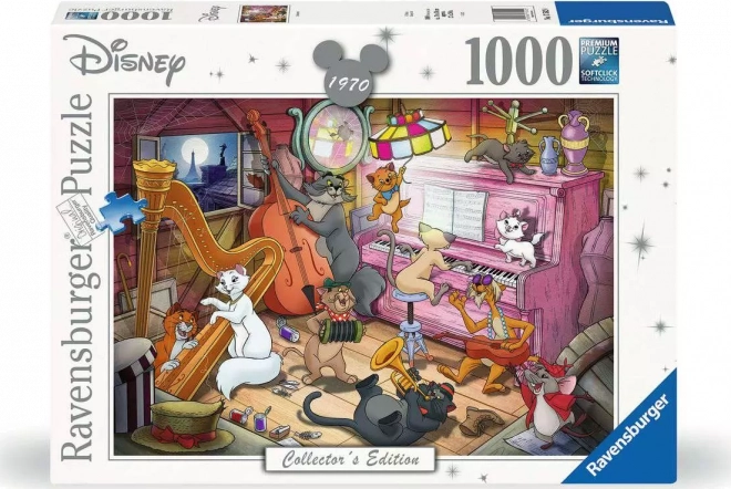 Ciesz się wysoką jakością układania z puzzlami RAVENSBURGER z motywem Disney Arystokoty. Opakowanie zawiera 1000 elementów z precyzyjnym wycięciem dla płynnego łączenia i obrazem o wymiarach ok. 70 × 50 cm.