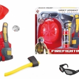 Zostań bohaterem dzięki zestawowi strażackiemu dla dzieci, który zawiera wszystko, co potrzebne do urozmaiconej zabawy w strażaków: kamizelkę, hełm, siekierkę, okulary, gaśnicę, łom i odznakę.