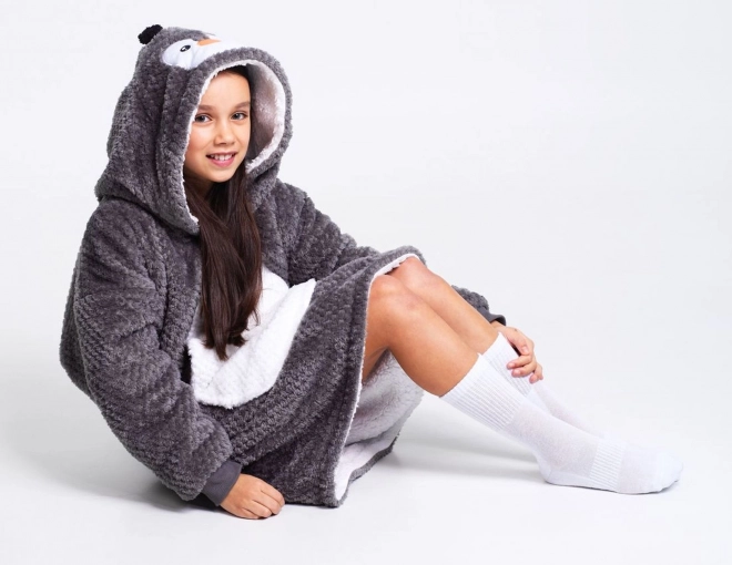 Ciesz się maksymalnym komfortem z „bluzą telewizyjną”, która łączy swobodę bluzy z ciepłem koca. Puszysty polar sherpa w środku przyjemnie grzeje, natomiast miękki flanel na zewnątrz jest miły w dotyku. Radosny motyw pingwina ucieszy każde dziecko, a luźny krój zapewni wygodę podczas oglądania TV, zabawy i odpoczynku.