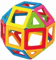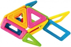 Magnetyczne kwadraty i trójkąty uczą dzieci kolorów i podstawowych figur geometrycznych. Łatwe łączenie wspiera małą motorykę, percepcję przestrzenną i kreatywność.