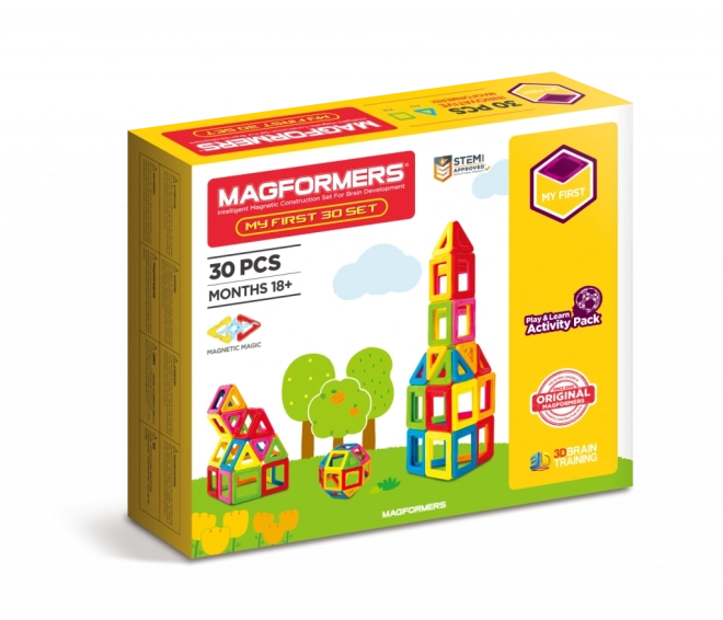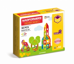 Zestaw Moje pierwsze MAGFORMERS 30 elementów jest idealny do wczesnego rozwoju dzieci od 18 miesięcy. Pełnokolorowe magnetyczne kwadraty i trójkąty łatwo się łączą i trzymają kształt, dzięki czemu dzieci szybko rozumieją zasadę układania 2D i budowania 3D. Bezpieczne wymiary, wytrzymała konstrukcja i starannie dobrane kolory zapewniają maksymalne bezpieczeństwo i atrakcyjność podczas zabawy.