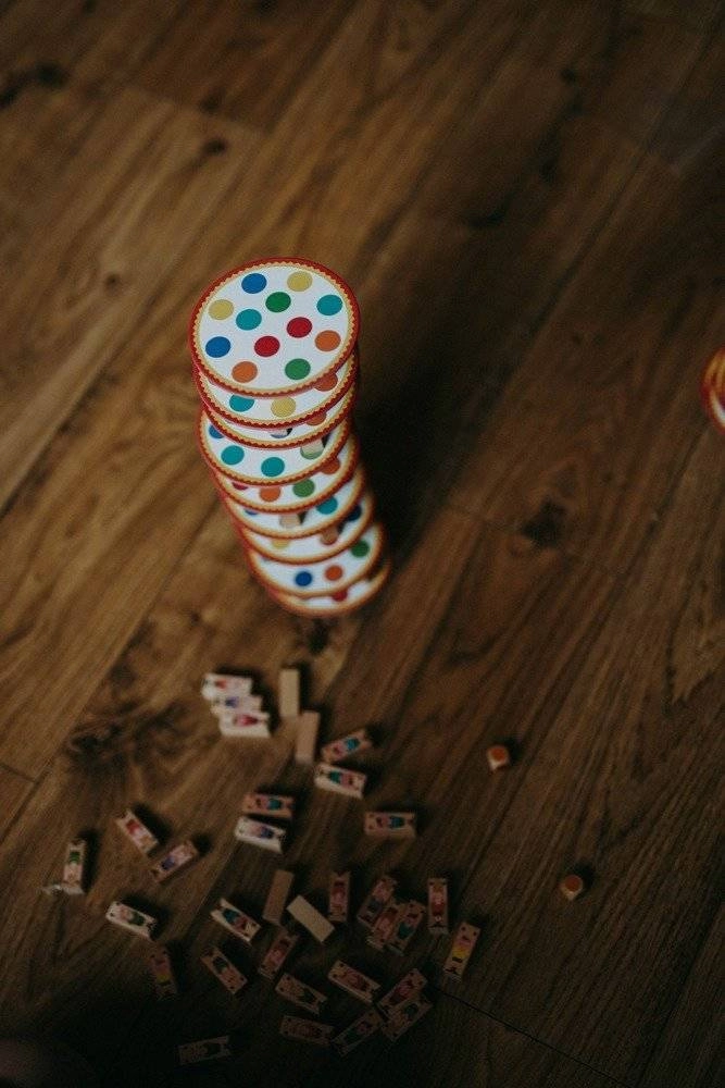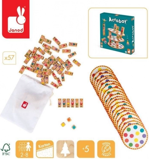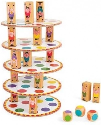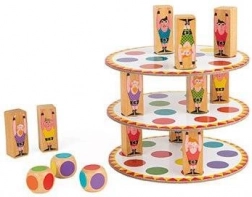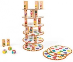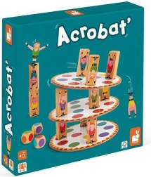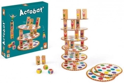 Komu jako pierwszemu przewróci się wieża? Zabawna gra towarzyska dla dzieci, która doskonali umiejętności. Rzucaj kostkami i strategicznie ustawiaj swoich akrobatów, aby zbudować jak najwyższą wieżę. Osoba, której wieża przewróci się jako pierwsza, przegrywa! Gra rozwija: - zręczność i motorykę - myślenie strategiczne - koncentrację. Gra zawiera 20 tekturowych podstawek (10,5 × 10,5 cm), 57 drewnianych żetonów i 3 kostki. Odpowiednia dla dzieci od 5 lat.