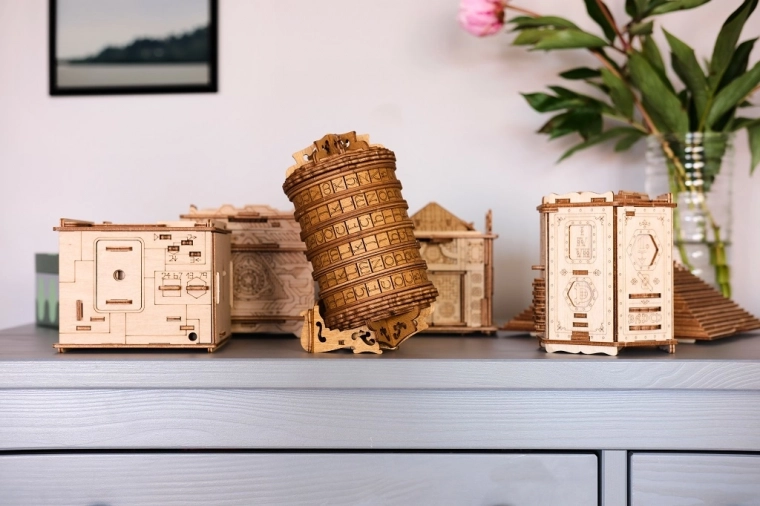 Eleganckie drewniane korpus z detalicznym grawerowaniem zapewnia trwałość, piękny wygląd i przyjemne wrażenia podczas rozwiązywania łamigłówki.