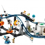 Zestaw LEGO Creator 3 w 1 Kosmiczna kolejka górska zapewnia dzieciom od 9 lat świetną porcję kreatywnej zabawy. Po niebieskich torach pędzą trzy wagoniki między rakietą, modelami Saturna i Ziemi, księżycową bazą i spadającą gwiazdą. Klimat podkreśla meteoryt ze świecącą kostką, którą można włączyć dla jeszcze bardziej imponującego efektu.