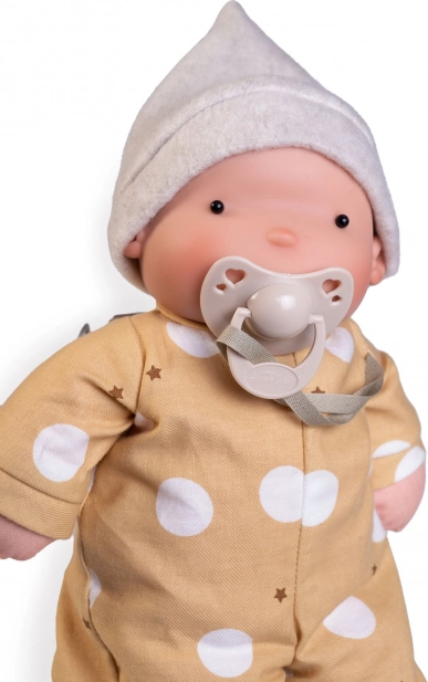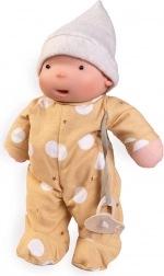 Ta ręcznie wykonana lalka ARIEL została stworzona do delikatnego przytulania i pierwszych zabaw w odgrywanie ról. Łączy organiczne materiały i wysoką jakość wykonania: ciało i kończyny z organicznej bawełny, głowa ze 100% silikonu oraz wypełnienie z miękkiego włókna PET z recyklingowanych butelek. Dzięki magnetycznemu smoczkowi wygląda i działa realistycznie, a jednocześnie jest bezpieczna dla niemowląt i maluchów.