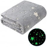 Ciesz się maksymalnym komfortem dzięki temu miękkiemu i ciepłemu kocowi z polaru w nowoczesnym szarym kolorze z motywem gwiazd, które świecą w ciemności. Idealny na kanapę, do sypialni oraz jako stylowa narzuta i świetny prezent dla miłośników przytulnego domu.