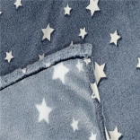 Ten miękki koc wyróżnia się wyjątkowo przyjemną strukturą i uniwersalnym wzornictwem, które łatwo dopasujesz do każdego wnętrza. Fluorescencyjne gwiazdy po naświetleniu delikatnie świecą w ciemności, tworząc magiczny wieczorny klimat.