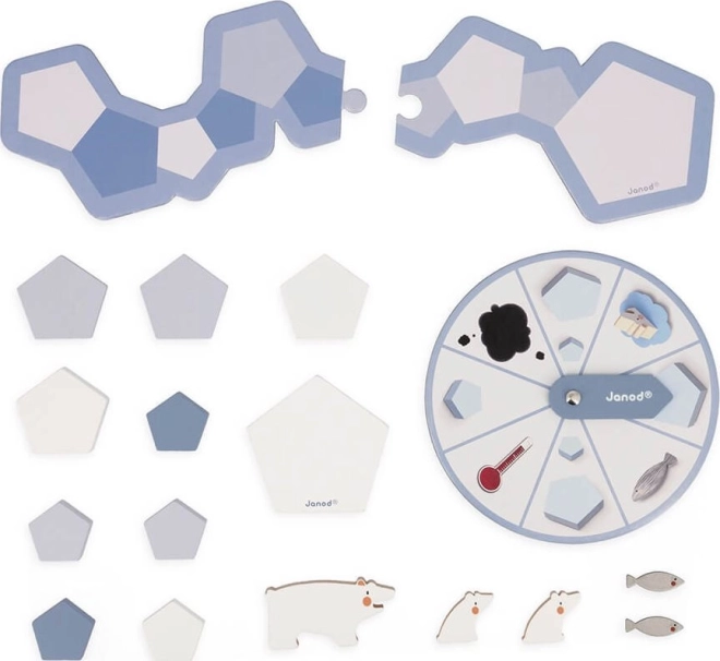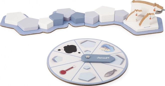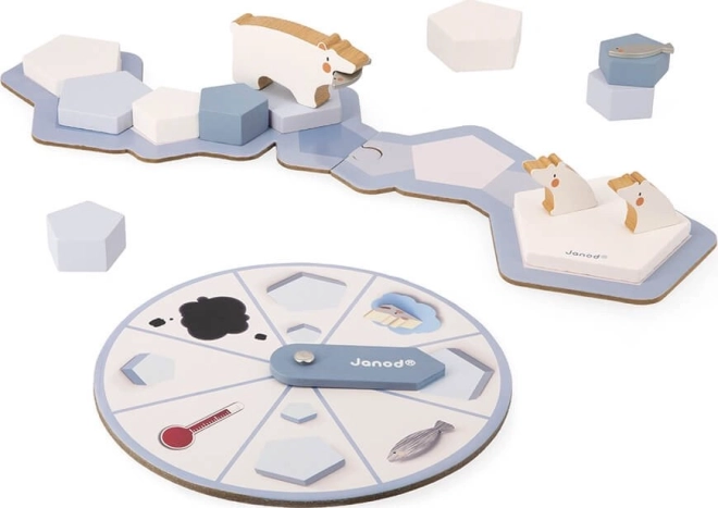 Janod Gra Planszowa Arctic Party jest idealna dla wszystkich, którzy lubią gry strategiczne o tematyce ekologicznej. Gracze muszą zadbać o niedźwiedzia polarnego, pomagając mu dostarczać ryby swoim młodym. Celem jest unikanie wszystkich przeszkód, takich jak topniejące lodowce czy plamy oleju.