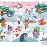 Puzzle Zimowa Impreza to idealny wybór dla małych miłośników zimowej zabawy. Zawierają łącznie 36 elementów, które po ułożeniu tworzą piękny obraz zimowego krajobrazu, gdzie dzieci uczestniczą w różnych aktywnościach. W zestawie znajduje się także plakatowa podkładka, dzięki której układanie jest łatwiejsze.