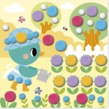 Dzieci po prostu przyklejają pomponiki we właściwym kolorze i rozmiarze w wyznaczonych miejscach, zgodnie z instrukcjami i kolorowymi konturami na obrazkach. Ukończenie każdego obrazka zajmuje około 20 minut, co jest idealne dla cierpliwości i koncentracji małych dzieci.