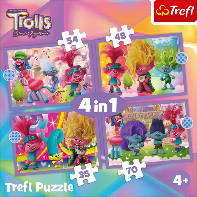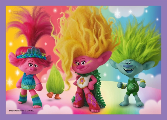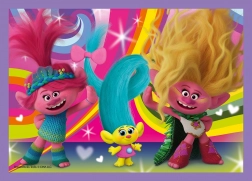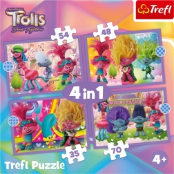 Baw się razem z dziećmi dzięki zestawowi czterech układanek marki Trefl z motywem filmu Trolle 3: Kolorowa przygoda. Progresywne puzzle oferują 4 różne poziomy trudności (35, 48, 54 i 70 elementów), a po ułożeniu każdy ma wymiary ok. 28,5 × 20,5 cm.