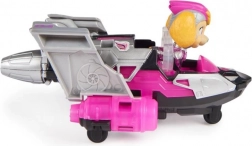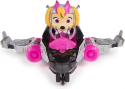 Skye ma na sobie różowy filmowy uniform z półprzezroczystymi detalami i stylowym hełmem. Zabawa tym zestawem wspiera małą motorykę, odgrywanie ról i wyobraźnię. Dla jeszcze większej frajdy można łączyć z innymi pojazdami, figurkami i zestawami Psi Patrol (sprzedawane oddzielnie).