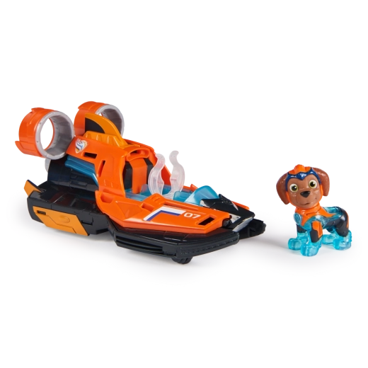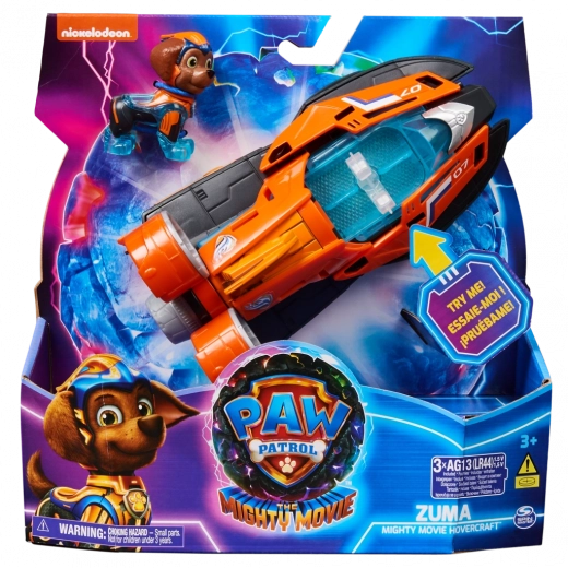 Dołącz do Zumy i przeżyj ekscytujące ratownicze przygody na jego poduszkowcu z filmu Psi Patrol: Wielki Film! Ten model poduszkowca Psiego Patrolu ma 18 centymetrów długości i prawie 10 centymetrów wysokości, wyróżnia się supersmukłym designem oraz oferuje emocjonujące efekty dźwiękowe z zsynchronizowanymi migającymi światłami, dzięki czemu stanowi fantastyczny dodatek do kolekcji każdego fana Psiego Patrolu (baterie w zestawie)! Zuma ma na sobie swój pomarańczowy uniform z filmu Psi Patrol: Wielki Film, z przezroczystymi elementami i efektownym kaskiem. Posadź Zumę na siedzeniu jego łodzi, aby aktywować oświetlenie w różnych miejscach jednostki, i zobacz, jak rozświetlają mu się łapki, by misje ratunkowe były jeszcze bardziej emocjonujące i zabawne, gdy będziesz przemieszczać się jego łodzią ratunkową z jednej misji do drugiej! Dzięki zabawkom ze świata Psiego Patrolu dziecko może podczas zabawy rozwijać wyobraźnię i umiejętności motoryczne, a jednocześnie odtwarzać ulubione sceny z filmu. Aby misje inspirowane serialem Psi Patrol były jeszcze ciekawsze i bardziej emocjonujące, zbierz wszystkie zabawki z filmów o Psiego Patrolu, na przykład niesamowity dowódczy lotniskowiec, oraz wszystkie zabawki z edycji specjalnych Psiego Patrolu dla dziewczynek i chłopców, takie jak figurki i zestawy zabawowe Mighty Pups, Aqua Pups i Big Truck Pups (każdy sprzedawany oddzielnie), i ciesz się nieskończonymi przygodami z ulubionym psim bohaterem oraz ratunkowym poduszkowcem Zumy z filmu Psi Patrol: Wielki Film!