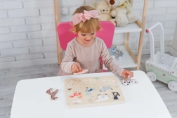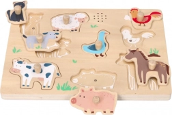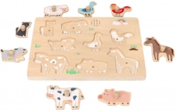 Po włożeniu elementu we właściwe miejsce rozlega się charakterystyczny dźwięk zwierzęcia. Dzieci łatwiej zapamiętują nazwy i wygląd zwierząt, a zabawa staje się dla nich bardziej atrakcyjna.
