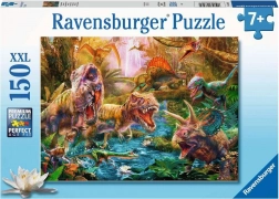 Ciesz się zabawą z tym puzzlami Ravensburger z motywem dinozaurów, idealnymi dla dzieci i dorosłych, które zawierają 150 elementów do interaktywnego układania.