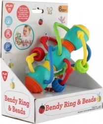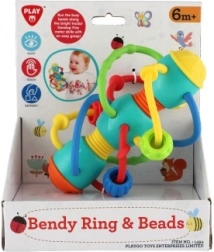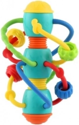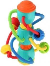 Grzechotka zawiera różnokolorowe pętle i kulki, które stymulują ciekawość dzieci i rozwijają zmysłową percepcję.