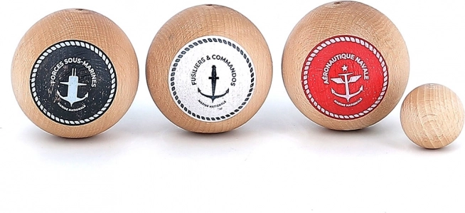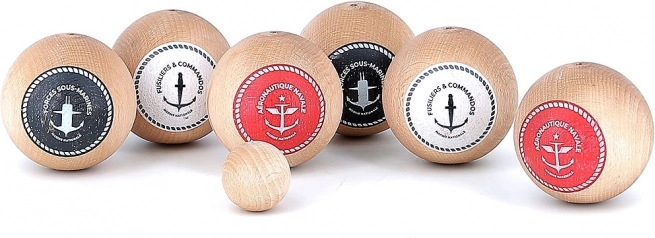 Stylowy zestaw do tradycyjnej gry w pétanque w designie inspirowanym francuską marynarką wojenną. Zawiera 6 kul do gry, kulkę celowniczą oraz praktyczny materiałowy woreczek. Wykonany z litego lakierowanego drewna, ekologicznie i przyjaźnie dla środowiska. Idealny dla 2–6 graczy, odpowiedni od 5 lat, wyprodukowany we Francji.
