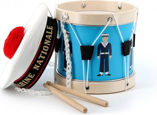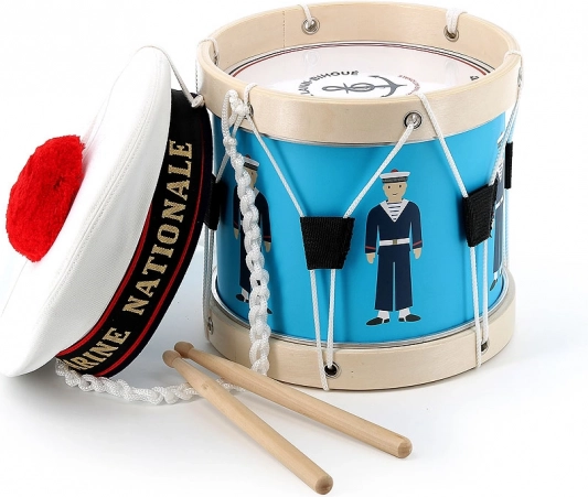 Ten bębenek powstał we współpracy z francuską marynarką wojenną, co widać w autentycznych detalach i jakości wykonania. Odpowiedni dla dzieci od 3 lat, a dzięki przyjemnemu brzmieniu i ergonomicznym pałeczkom polubią go zarówno początkujący, jak i mali miłośnicy muzyki.
