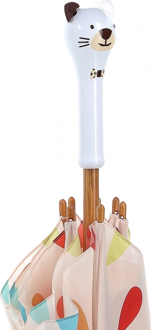 Lakierowany drewniany uchwyt parasolki w kształcie zwierzątka oraz solidna metalowa konstrukcja sprawdzą się w deszczu nawet u najmłodszych dzieci. Parasolka stanie się ulubionym towarzyszem w deszczowe dni. Paczkę przyjaciół tworzą pingwin René, niedźwiedź Marcel, królik Raoul, koala Alice, kotka Mariette i pies Lucien. W którym z nich się zakochasz? Parasol jest częścią kolekcji Boizoos, inspirowanej postaciami zwierzątek, i w tym samym wzornictwie dostępny jest także jako wyścigówka, grzechotka lub pozytywka. Ta zabawka jest produkowana we Francji, w pracowni Jura, i lakierowana unikalnym procesem zanurzania w kąpieli lakierniczej. Główne cechy: wysokiej jakości obróbka drewna i wytrzymała konstrukcja, specjalna technologia lakierowania, część kolekcji Boizoos, idealny prezent dla najmłodszych, wyprodukowano we Francji