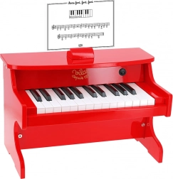 Odkryj magię muzyki z czerwonym pianinkiem dla dzieci VILAC. Eleganckie drewniane pianino z 18 klawiszami i 10‑stronicową partyturą rozwija poczucie rytmu, słuch i kreatywność. Działa na baterie i oferuje automatyczne wyłączanie po kilku minutach bezczynności. Świetny wybór na pierwsze muzyczne kroki – wytrzymałe wykonanie, piękne brzmienie i radość z gry.